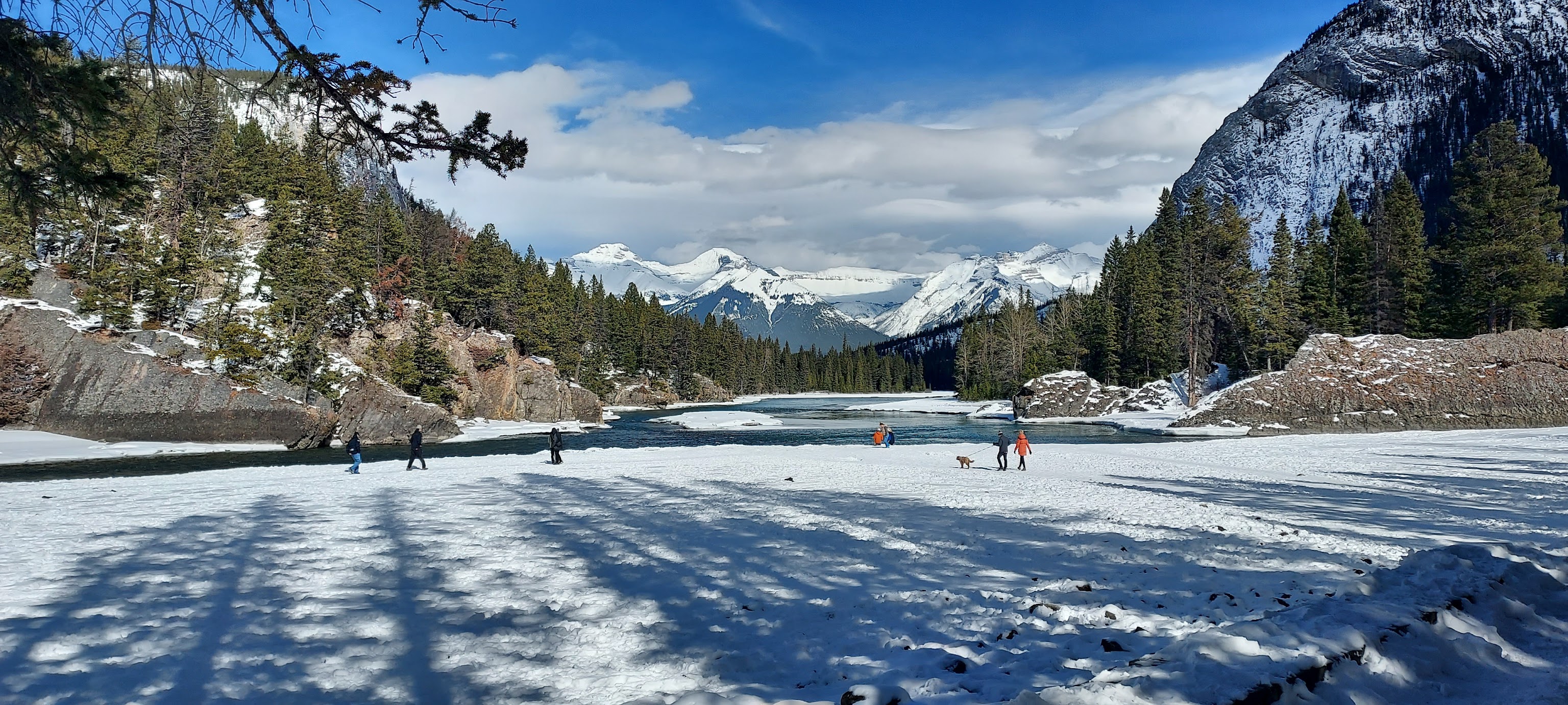 Bow Falls - winter Set in a big river valley eroded by past glaciers, this wide & short waterfall is a local landmark.