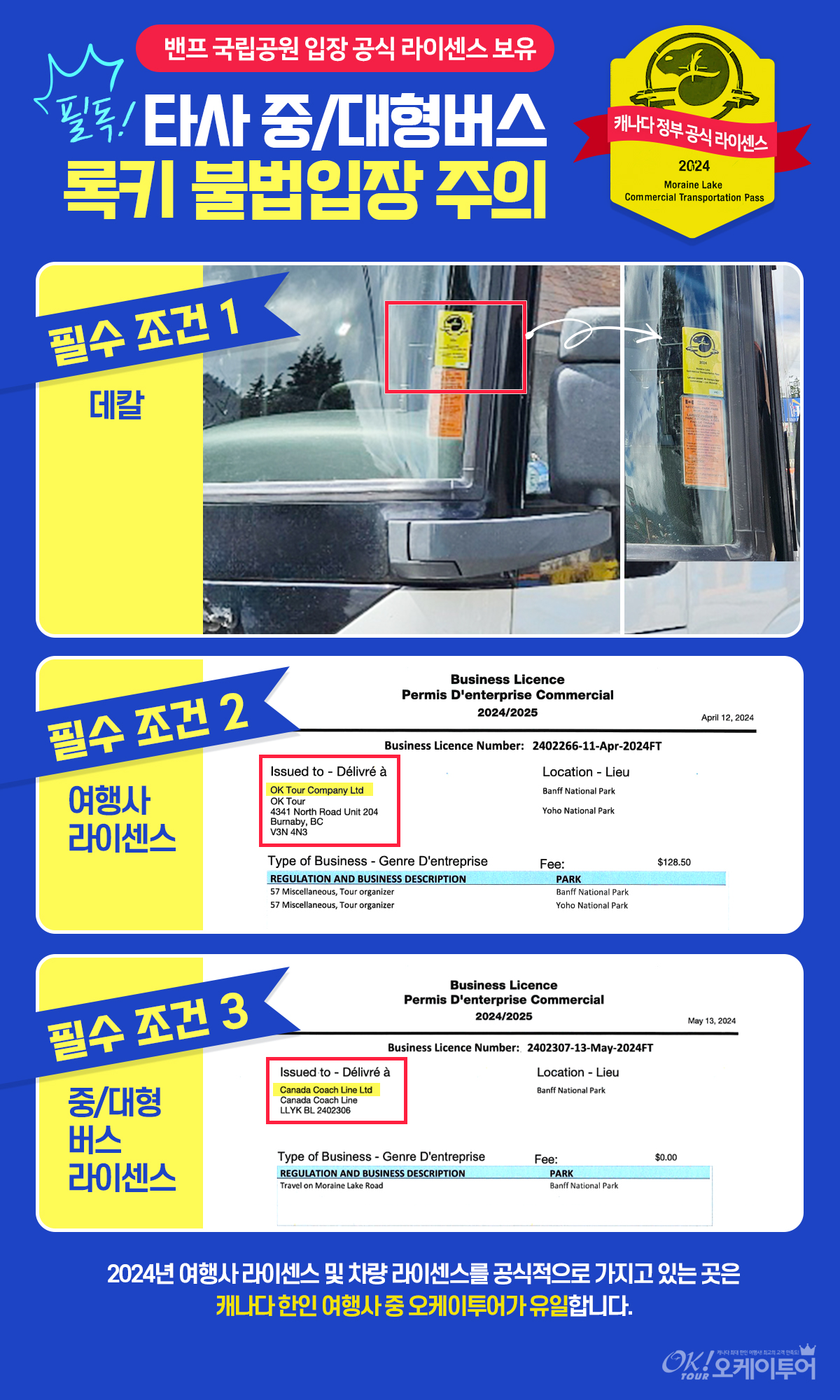 [긴급 필독] 타 여행사에서 중형/대형버스 이용시 록키 공원 불법 입장으로 인한 피해를 보지 않도록 유의해 주세요.