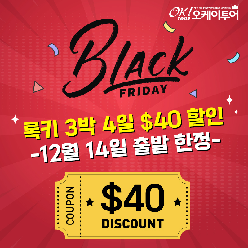 [블랙 프라이데이 특별 프로모션] 록키 3박 4일 $40 할인!!!!