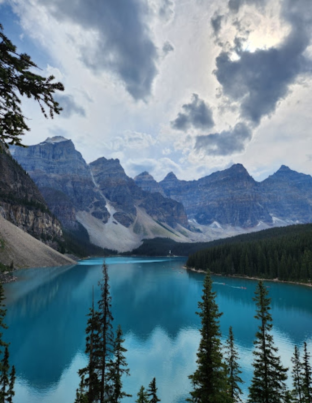 Moraine Lake is a glacially fed lake in Banff National Park, 14 kilometres (8.7 mi) outside the hamlet of Lake Louise, Alberta, Canada. It is situated in the Valley of the Ten Peaks, at an elevation of approximately 1,884 metres (6,181 ft). The lake has a surface area of 50 hectares (120 acres). When it is full, it reflects a distinctive shade of azure blue. The unique colour is due to the refraction of light off the rock flour deposited in the lake on a continual basis by surrounding glaciers. / Only available for departures between July and September. Tours may not be available depending on local circumstances.