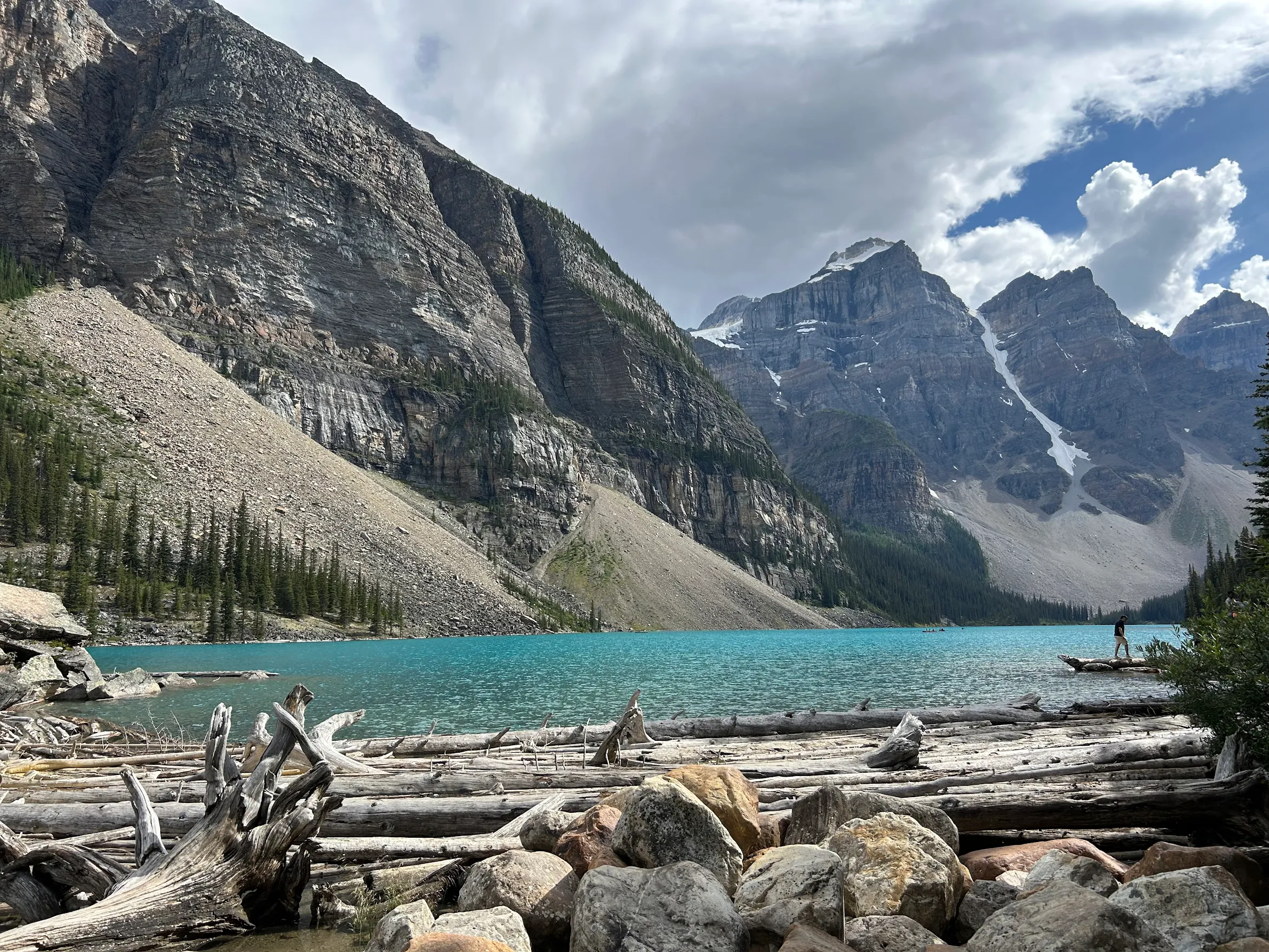 모레인 레이크(Moraine Lake)는 캐나다 앨버타 주 레이크 루이스 작은 마을에서 14km 떨어진 밴프 국립공원에 있는 빙하 호수입니다. 해발 약 1,884m(6,181피트)의 열 봉우리 계곡에 위치해 있으며, 호수의 표면적은 50헥타르(120에이커)입니다. 하늘색의 독특한 색조를 반사하는 호수의 독특한 색은, 호수에 쌓인 암석 가루가 주변 빙하에 의해 지속적으로 빛이 굴절되어 나타나는 현상입니다. / 6월~10월 중순 출발 시에만 가능하며, 날씨나 현지 사정에 따라 투어가 불가할 수도 있습니다. / 캐나다 스트롱 패스는 모레인 레이크에는 적용되지 않으며 입장료는 파크 패스 캐나다에 전달 됩니다.